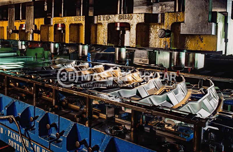 Tùy vào độ phức tạp của chi tiết ô tô, quá trình dập có thể thực hiện trong một công đoạn đơn (mỗi lần ép của máy dập tạo ra hình dạng mong muốn), hoặc qua nhiều công đoạn liên tiếp với tốc độ cao.